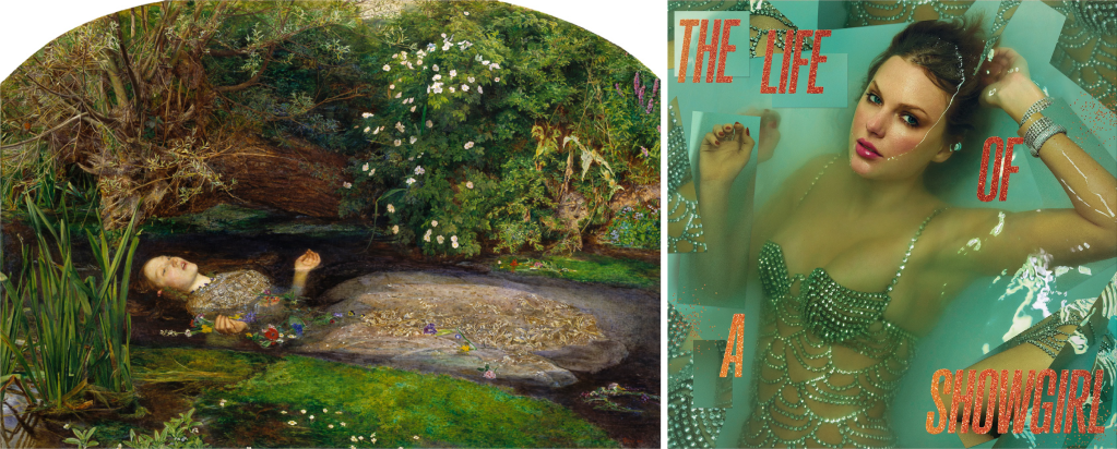 Sir John Everett Millais’s 1851–52 painting “Ophelia” (left) and the cover of The Life of a Showgirl (right)