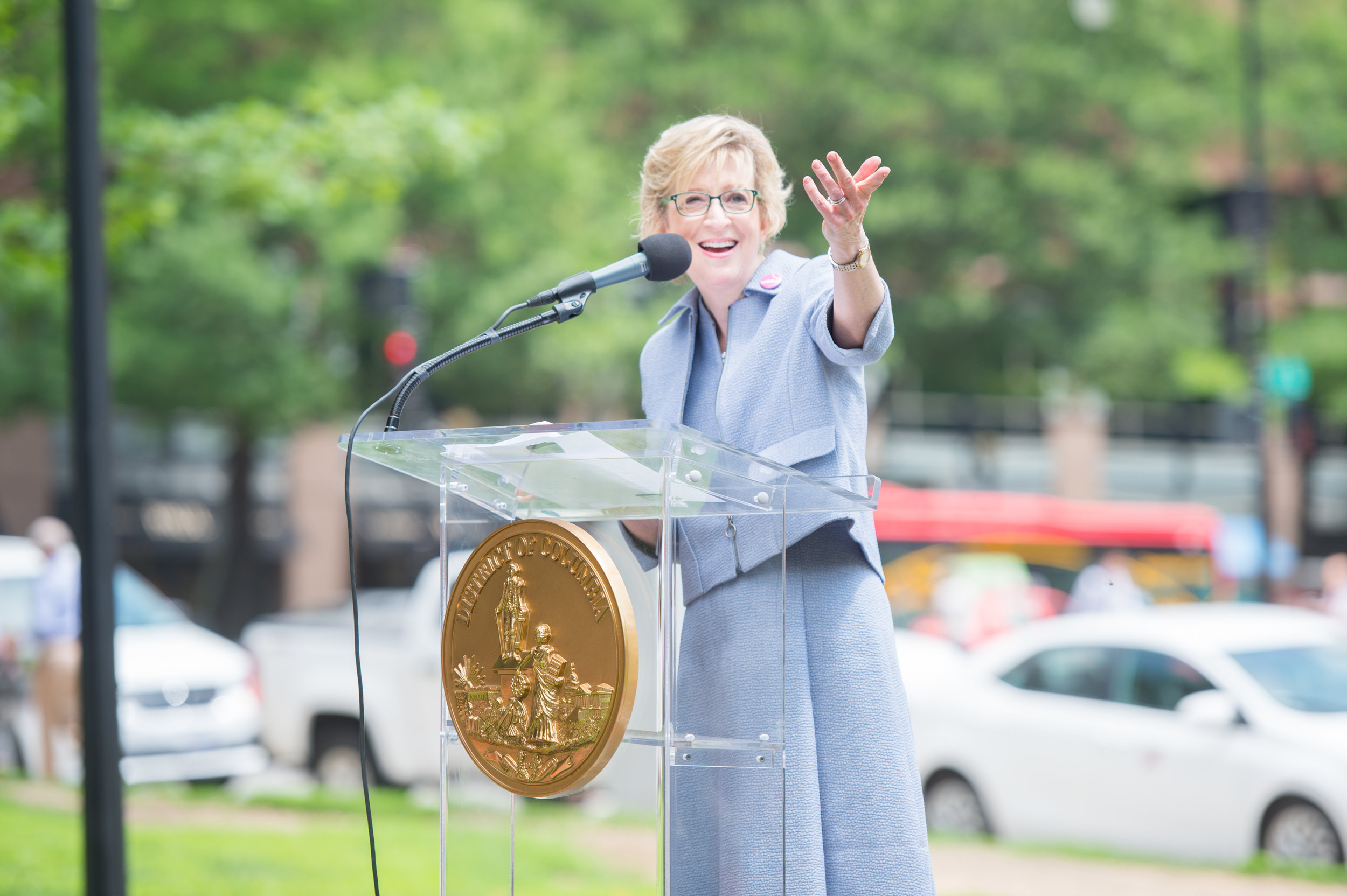 Mayor Muriel Bowser addresses the crowd at the groundbreaking ceremony.