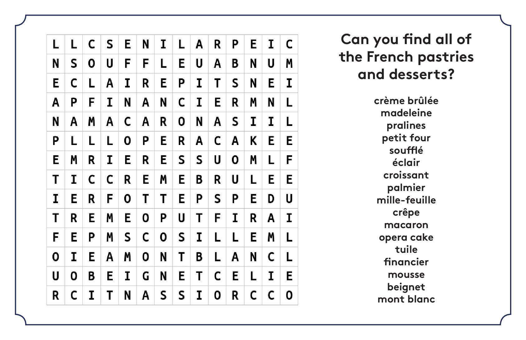 French Pastry Word Search